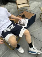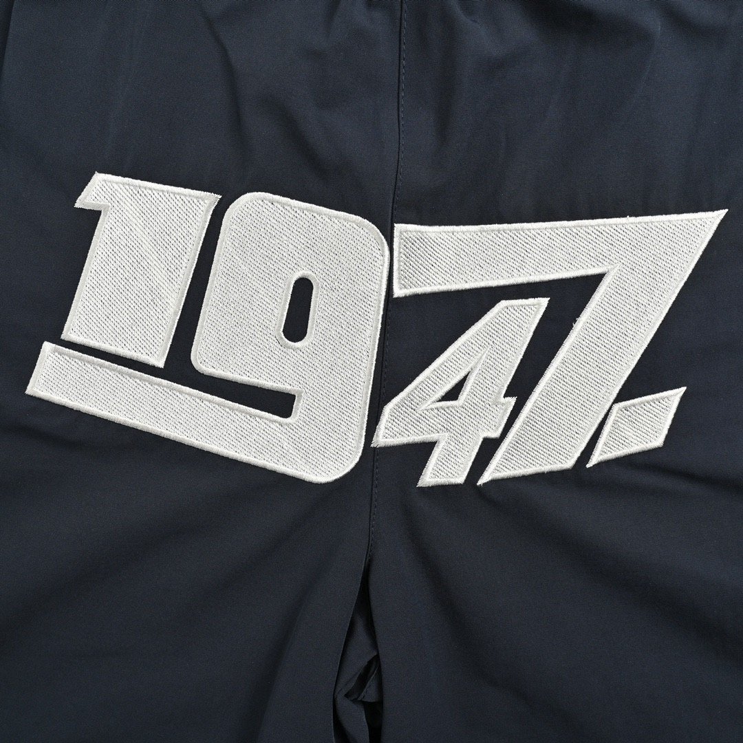 The 1947 Embroidery Logo Tatting Short features an intricate 1947 embroidery logo with tatting details. soft fabric. elastic waistband. and functional side pockets. Ideal for everyday wear.