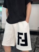 The 24ss Big Double F Logo Flocking Short features a prominent double F logo. soft fabric. elastic waistband. and functional side pockets. Ideal for everyday wear.