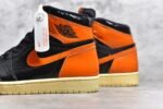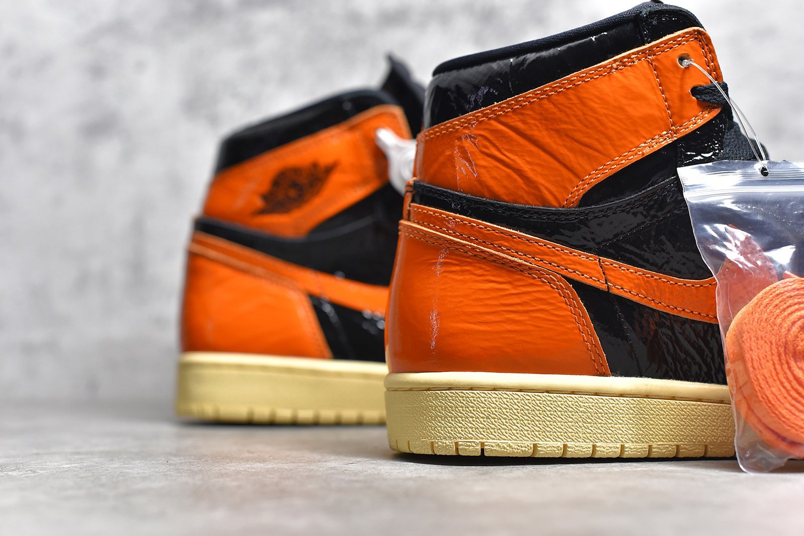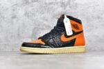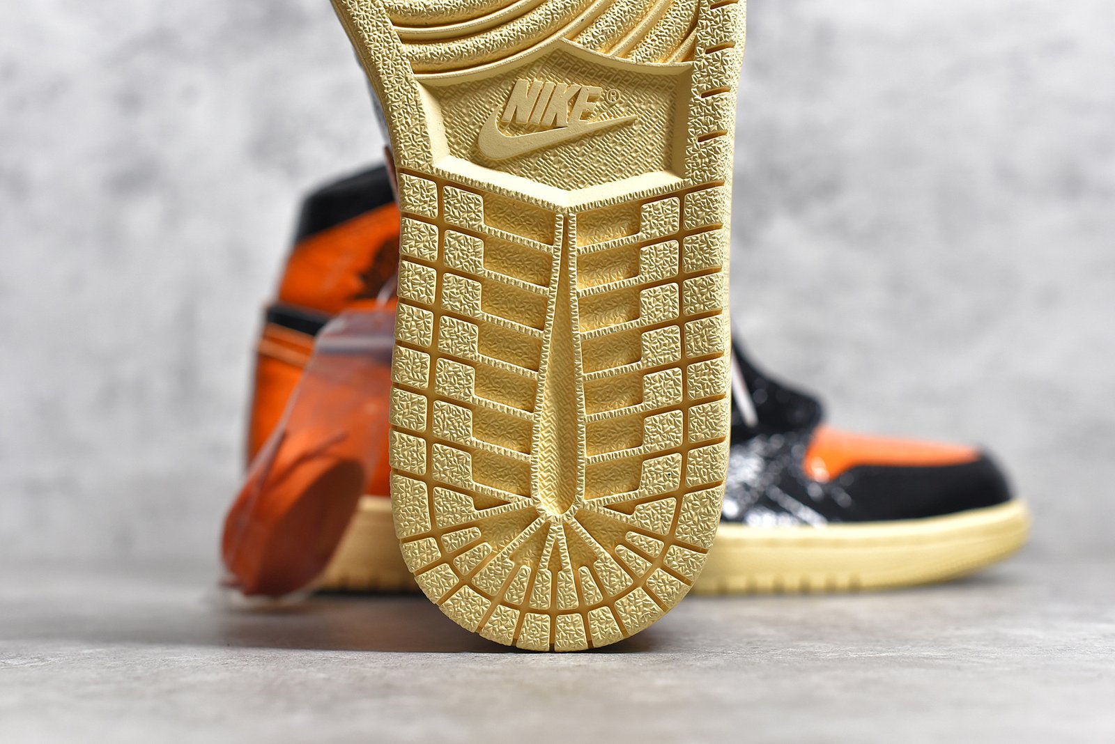 The Air Jordan 1 Retro High OG ‘Shattered Backboard 3.0’ is a striking iteration of the iconic silhouette. paying homage to Michael Jordan’s memorable dunk that shattered a backboard during a 1985 exhibition game in Italy. This version features a premium leather upper in a unique color blocking scheme. combining black. Starfish orange. and Pale Vanilla hues. The black panels provide a sleek backdrop for the vibrant orange accents on the toe box. heel. and collar. reminiscent of shattered glass. Pale Vanilla detailing on the Swoosh. Wings logo. and midsole adds a subtle contrast. while a black rubber outsole completes the design. With its bold colorway and premium materials. the Air Jordan 1 Retro High OG ‘Shattered Backboard 3.0’ is a must-have for collectors and fans of the Jordan Brand.