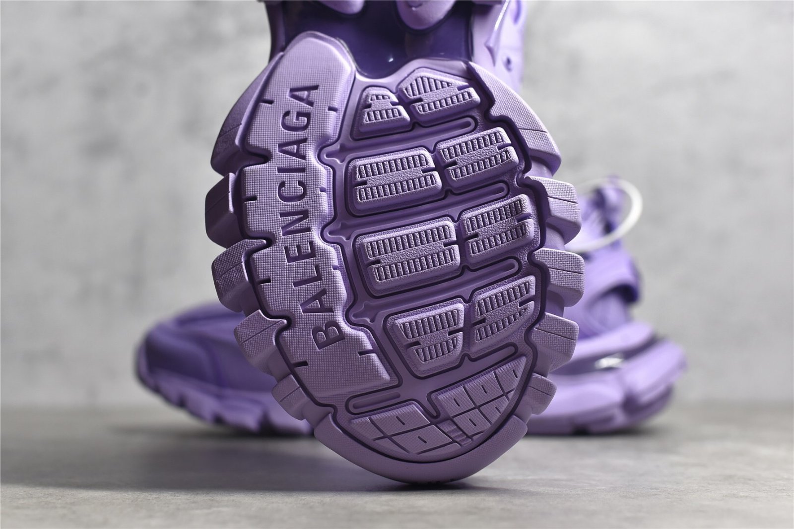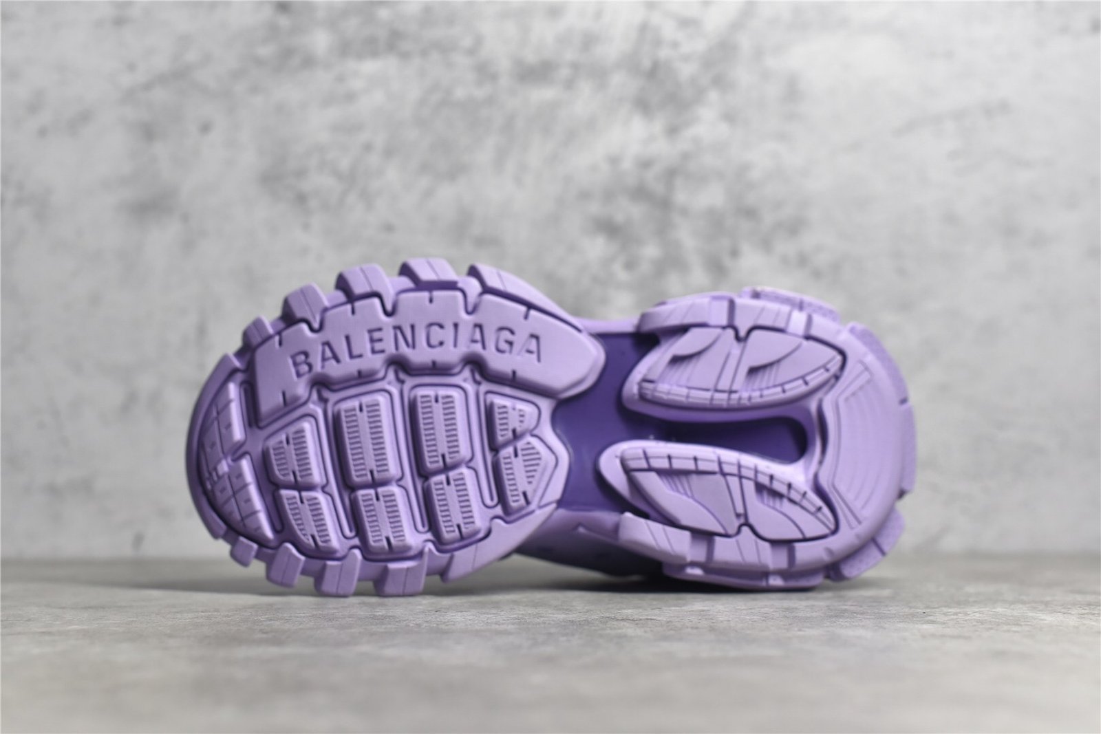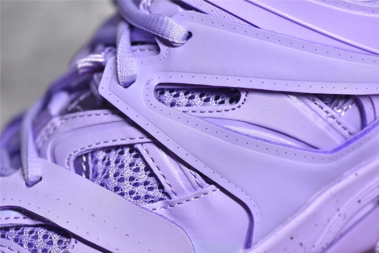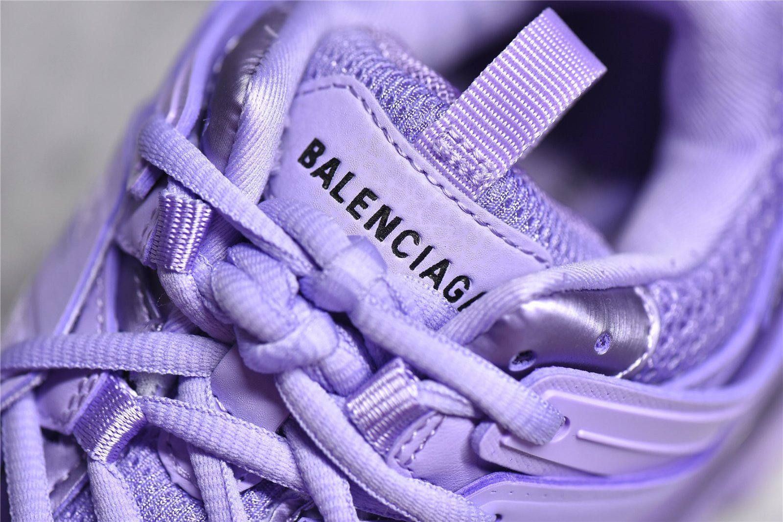 The Balenciaga Track 3.0 Purple sneakers feature a striking purple color with mesh and synthetic upper. dynamic layering. and chunky sole for comfort and stability. Ideal for those who value urban style and practical footwear.