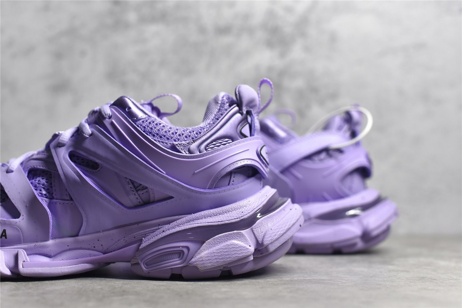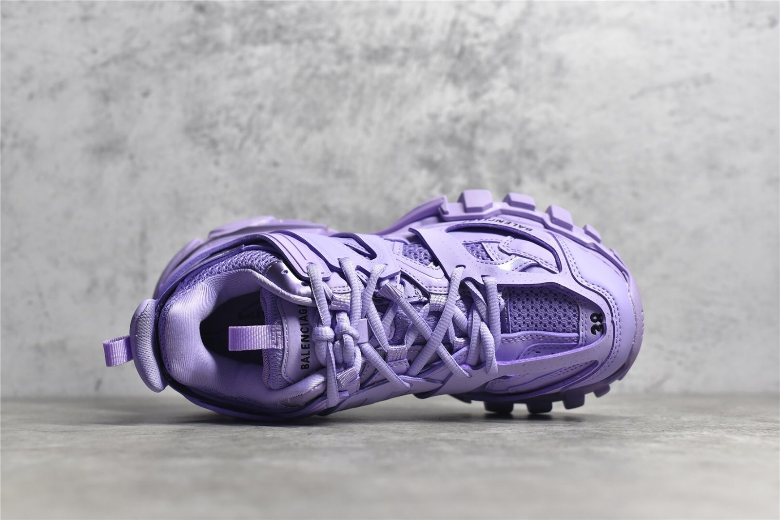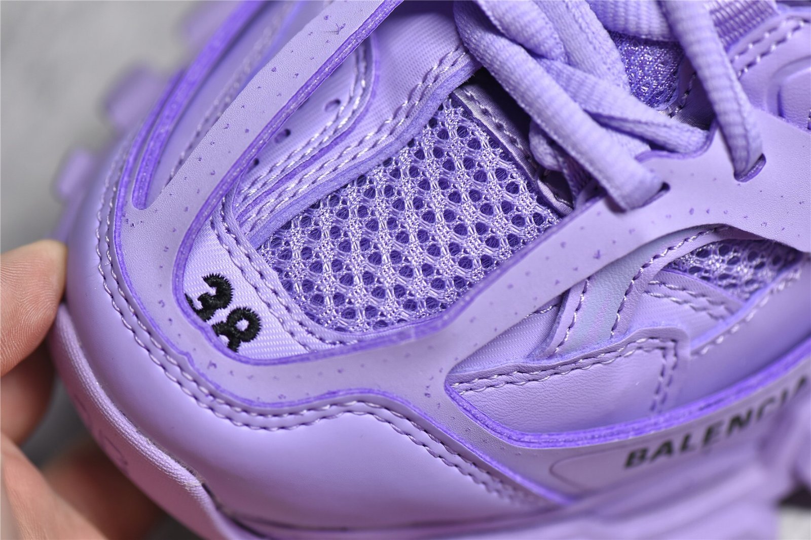 The Balenciaga Track 3.0 Purple sneakers feature a striking purple color with mesh and synthetic upper. dynamic layering. and chunky sole for comfort and stability. Ideal for those who value urban style and practical footwear.