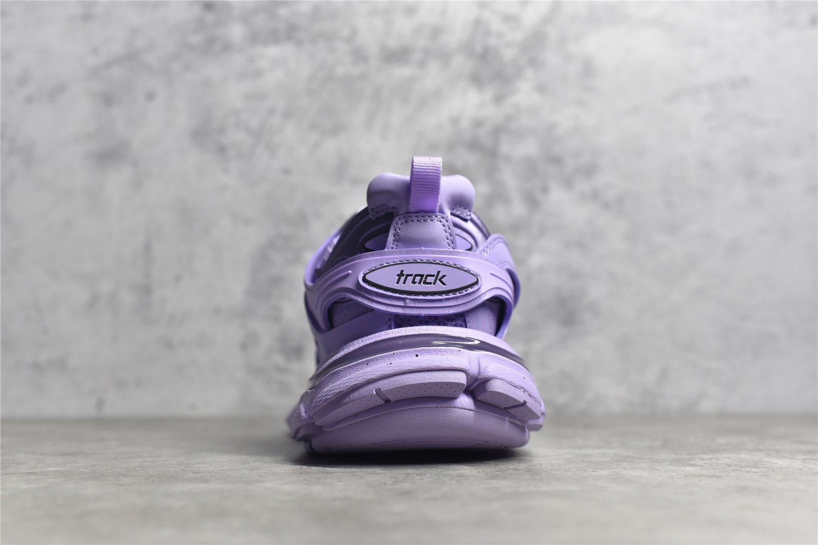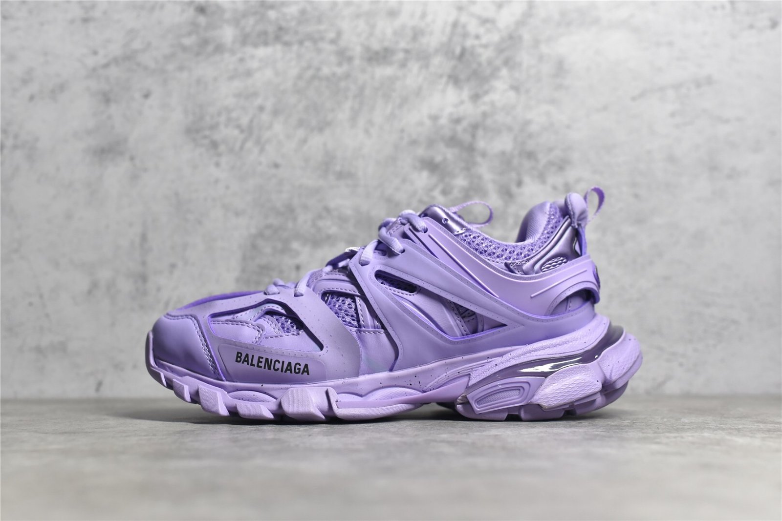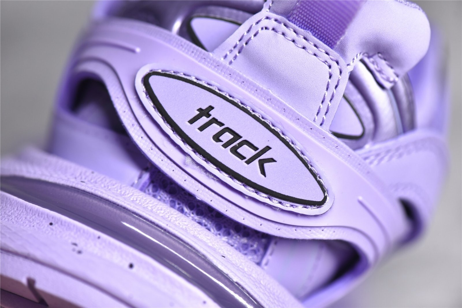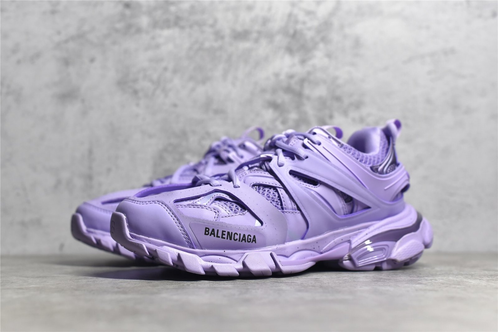 The Balenciaga Track 3.0 Purple sneakers feature a striking purple color with mesh and synthetic upper. dynamic layering. and chunky sole for comfort and stability. Ideal for those who value urban style and practical footwear.