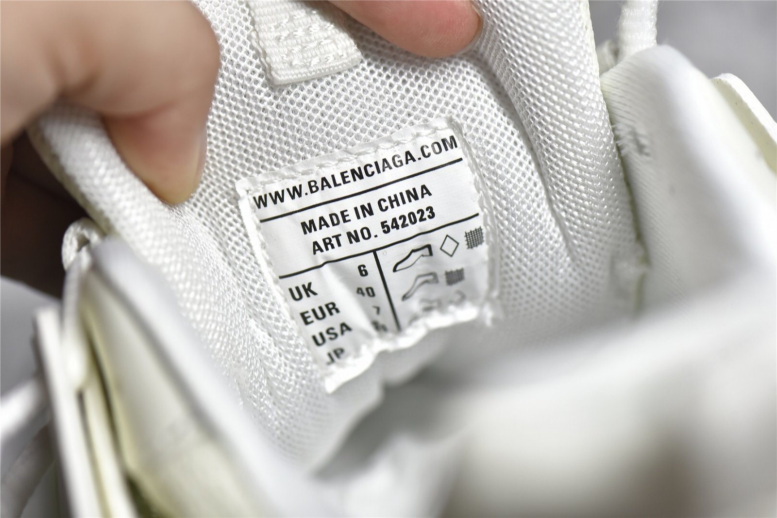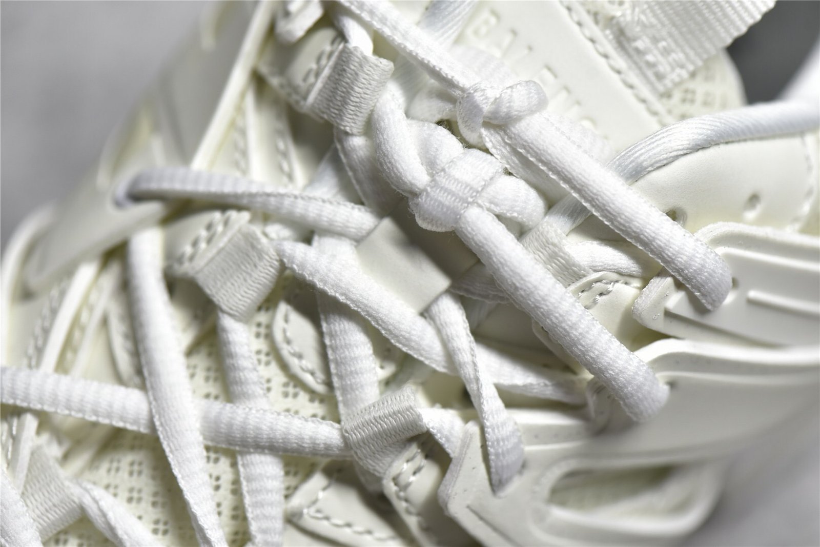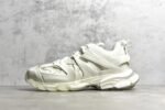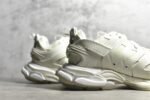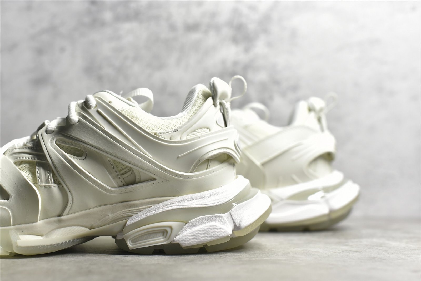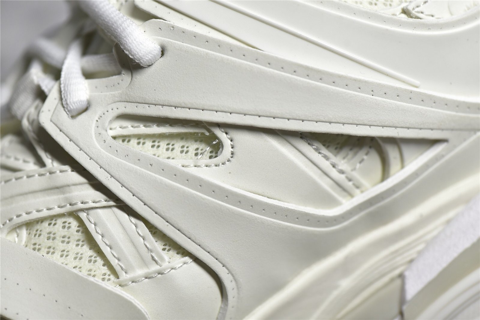 The Balenciaga Track Clear Sole Sneaker Cream GID combines cream mesh with nylon for a stylish look. Features layered construction. padded collar. glow-in-the-dark sole unit. and durable rubber outsole. Ideal for sneaker enthusiasts.