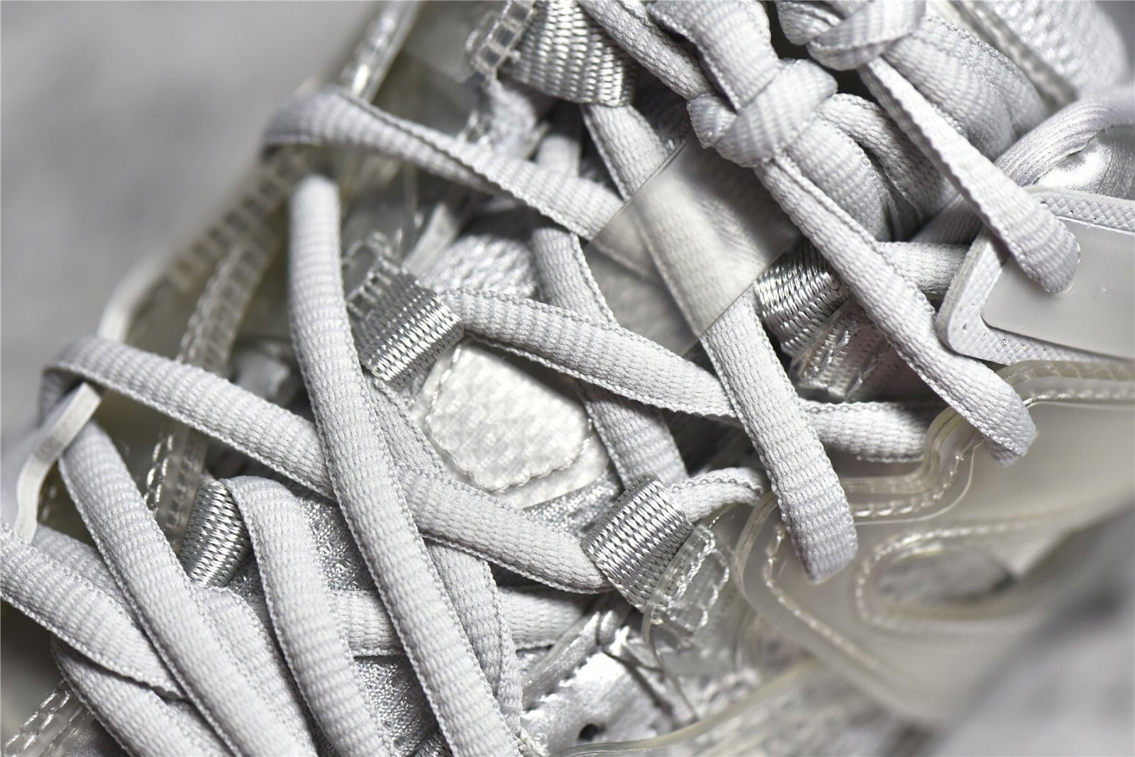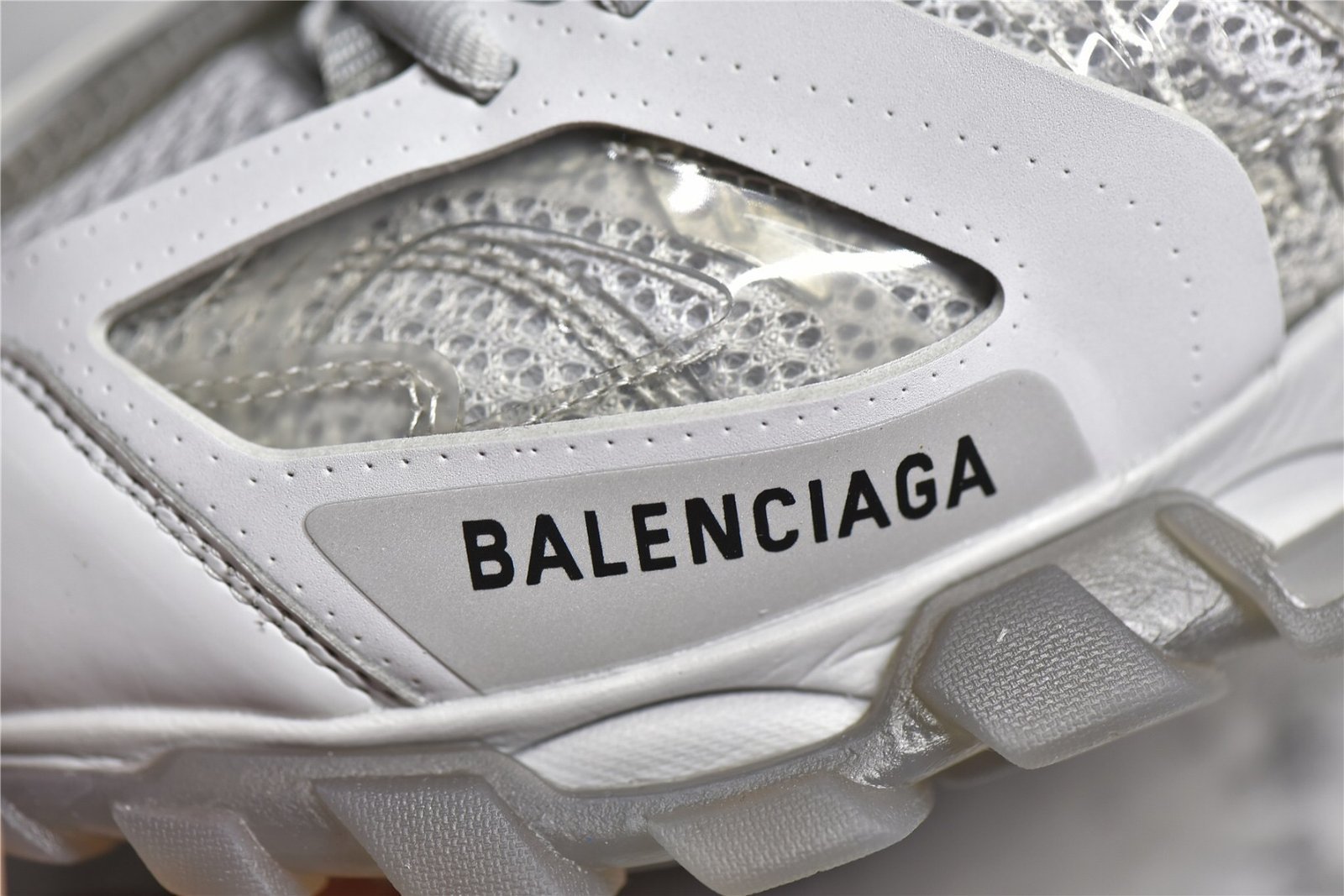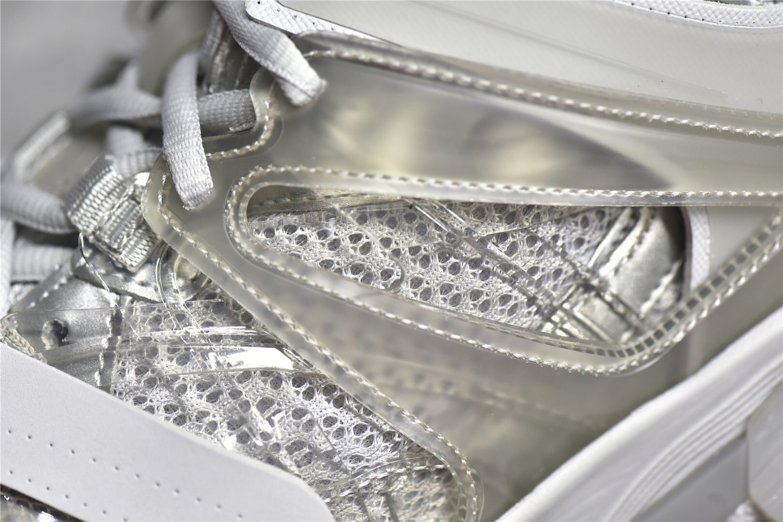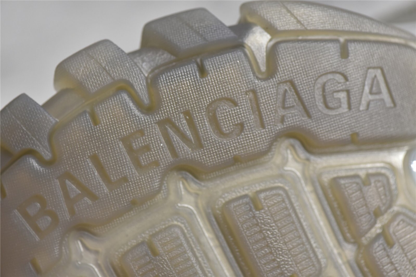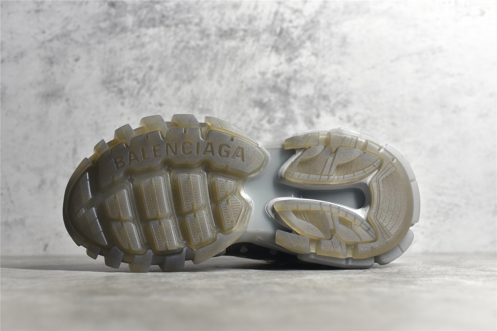 The Balenciaga Track Clear Sole Sneaker Gray combines gray mesh with nylon for a sleek look. Features a layered construction. padded collar. clear sole unit. and durable rubber outsole. Ideal for sneaker enthusiasts.