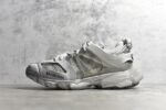 The Balenciaga Track Clear Sole Sneaker Gray stands out with its innovative design and premium materials. This modern sneaker features a mix of gray mesh and nylon. offering a sleek yet robust look. The layered construction ensures durability. while the padded collar and tongue provide extra comfort. The clear sole unit in the heel delivers responsive cushioning. perfect for all-day wear. Durable rubber outsole with a dynamic tread pattern enhances traction and grip. This pair blends futuristic style with practical functionality. making it a must-have for sneaker enthusiasts.