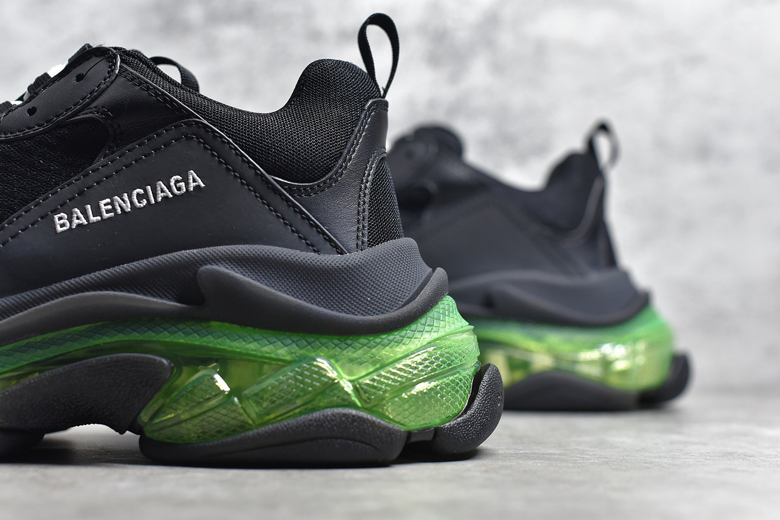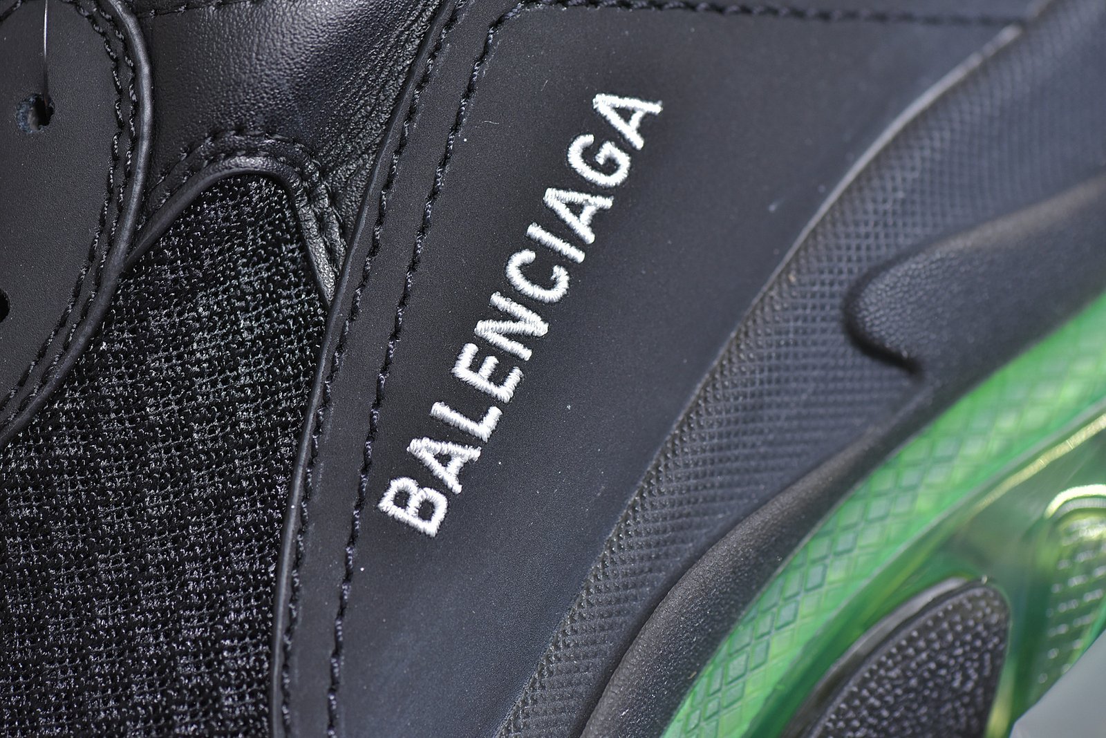 The Balenciaga Triple S Clear Sole BlackGreen features a bold black and green design with Balenciaga’s signature chunky sole. Crafted for durability and comfort with premium materials. mesh panels. and a clear sole for a unique style statement.
