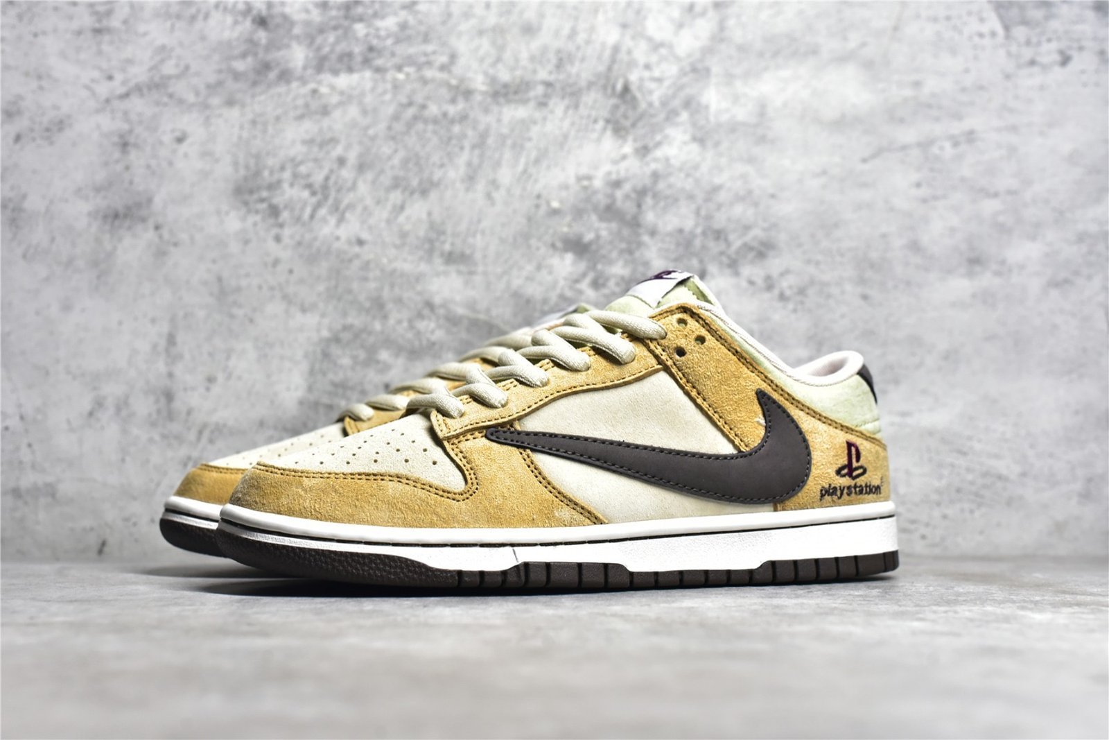 The Dunk Low x Travis Scott x PlayStation 2 combines premium materials with PlayStation-inspired colors and logos. Ideal for sneaker collectors and gaming enthusiasts seeking style and comfort.