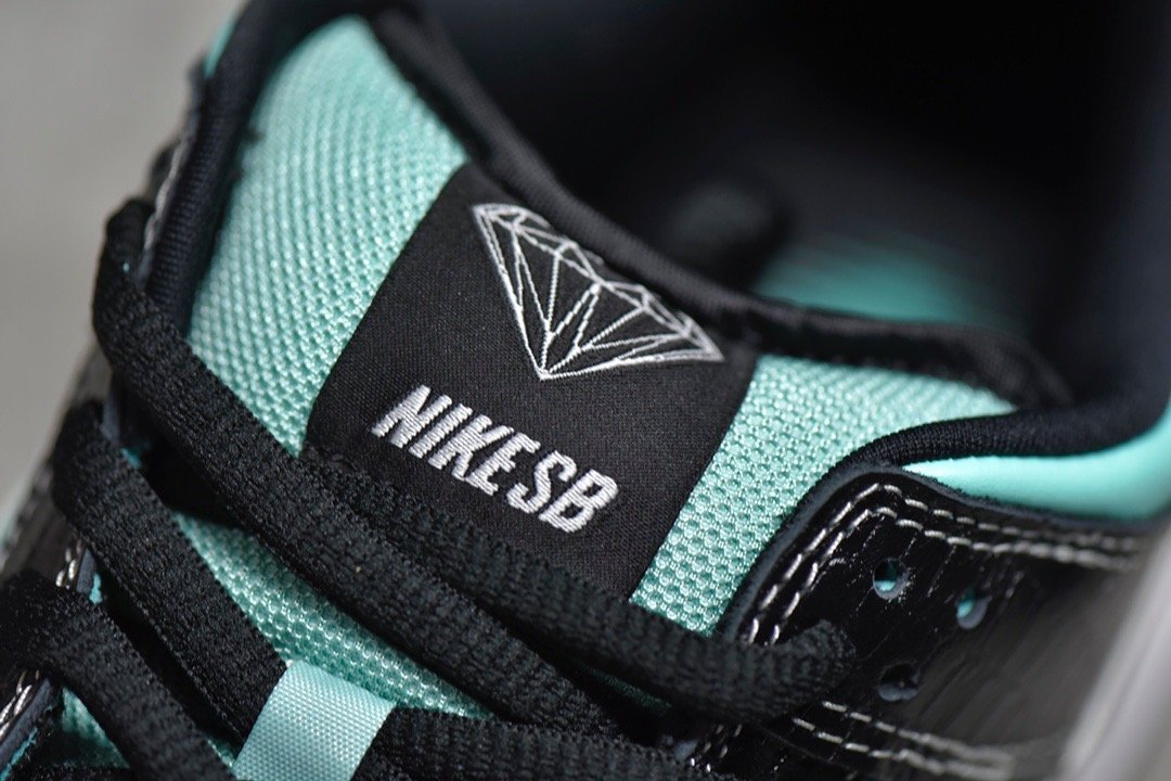 The Dunk SB Low Diamond Supply Co. Tiffany features a signature Tiffany blue. black. and silver colorway. premium leather and croc-embossed materials. breathable construction. responsive Zoom Air cushioning. and a durable rubber outsole. Ideal for sneaker enthusiasts and collectors seeking a luxurious and iconic shoe.