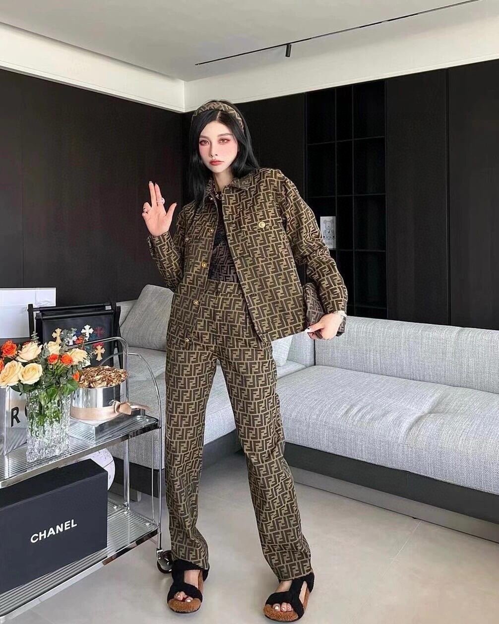 The Full FF Logo Pants make a bold statement with their all-over FF logo pattern. These pants feature a striking design that showcases the iconic FF logo. adding a touch of luxury and style. Made from high-quality fabric. they offer both comfort and durability. The elastic waistband ensures a secure and adjustable fit. while the relaxed fit provides ease of movement. With side pockets for convenience. these pants are perfect for fashion-forward individuals who appreciate high-end design.