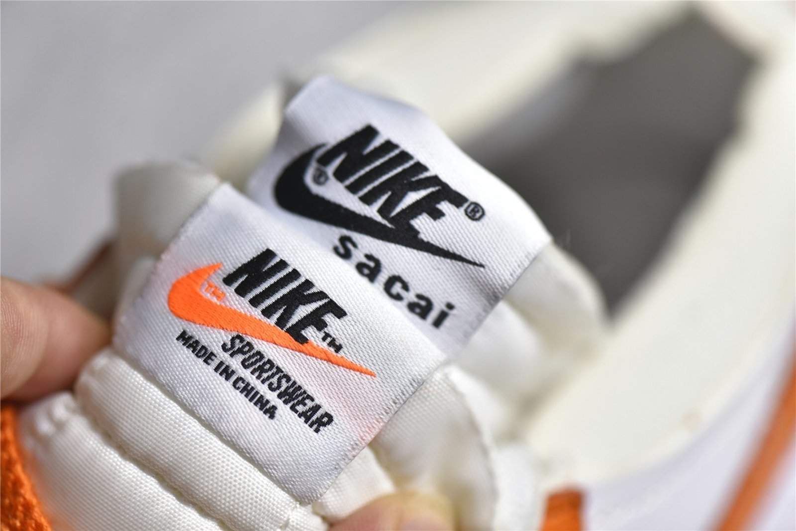 The Sacai Blazer – Orange features an orange suede upper with white and grey accents. crafted with premium materials for durability. Includes breathable mesh. padded collar. visible Air-Sole unit. and durable rubber outsole. perfect for those seeking exclusive style.