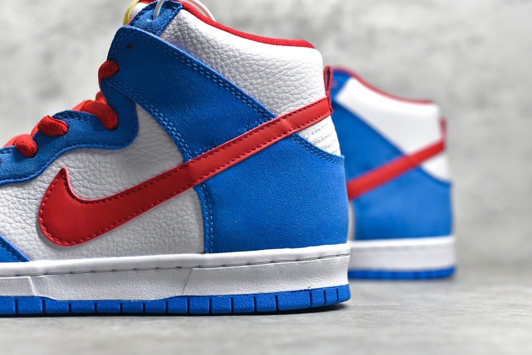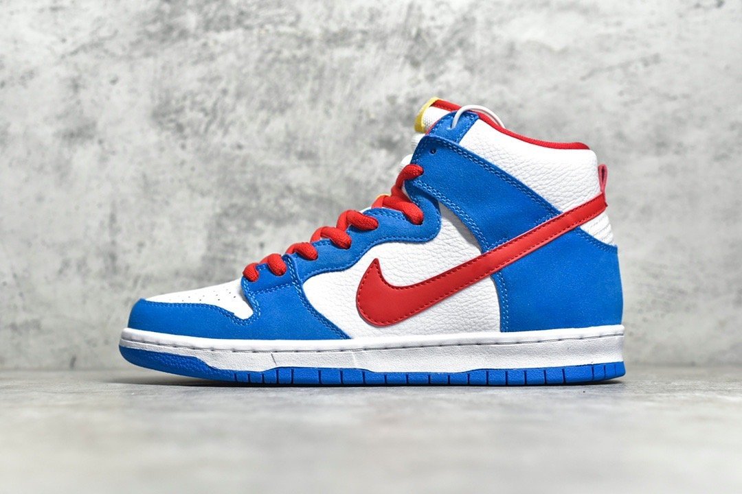 The SB Dunk High “Doraemon” is a special collaboration sneaker that draws inspiration from the beloved Japanese manga and anime character. Doraemon. Here are the typical features of this shoe: