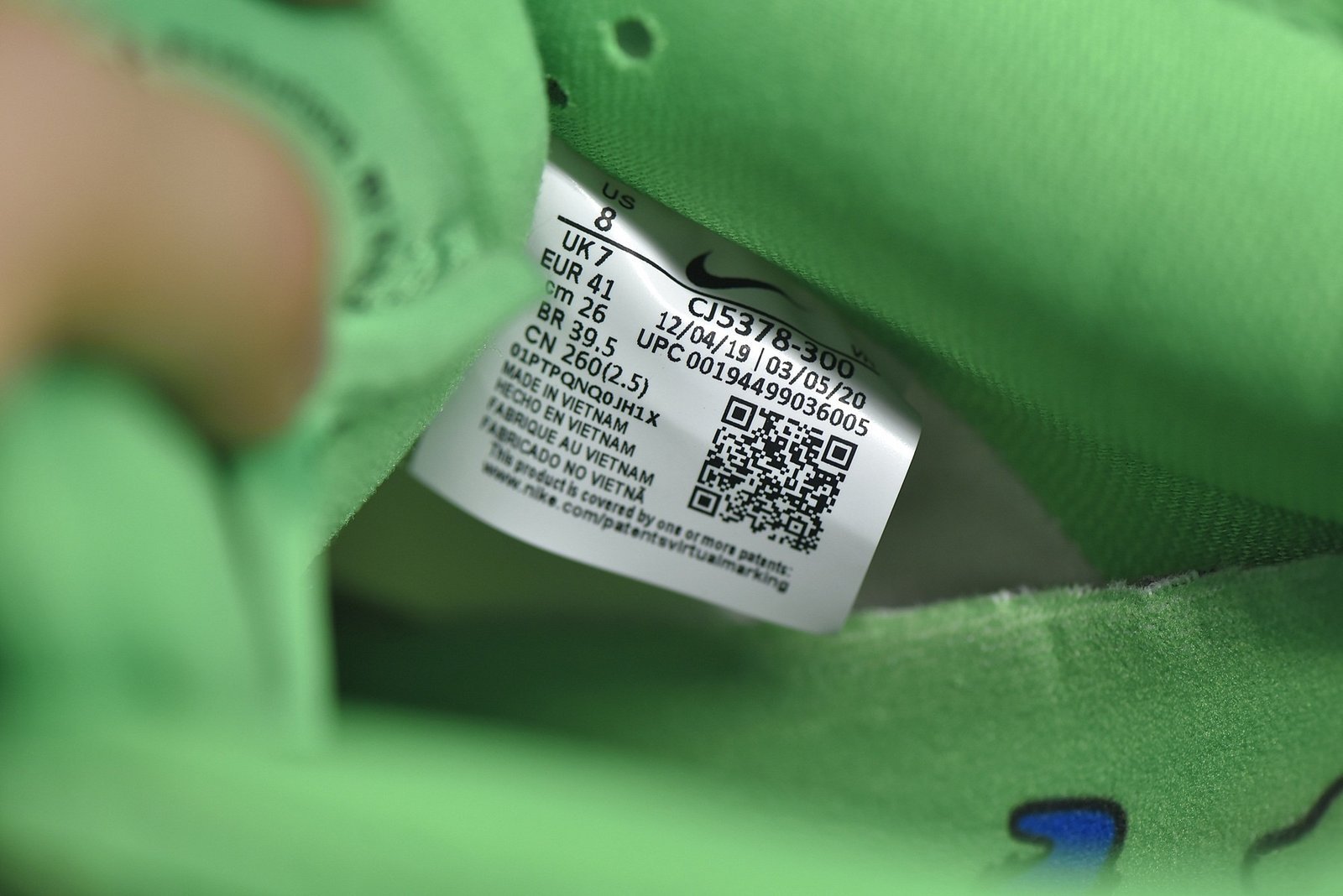 • Design Elements: This sneaker features a green upper with faux fur panels and suede overlays. The design includes a jagged Swoosh resembling the bears’ collars and a hidden stash pocket in the tongue. The bold green color is complemented by yellow and blue accents. creating a lively and eye-catching look.
