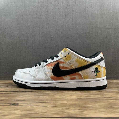 The SB Dunk Low Raygun Tie-Dye White (BQ6832-101) pays homage to Nike’s iconic “Raygun” theme with a fresh. tie-dye twist. This sneaker features a white leather upper adorned with vibrant tie-dye patterns. capturing attention with its bold and playful design. The Nike Swoosh and heel tab contrast in bright orange. adding a pop of color against the white backdrop. With a padded tongue and Zoom Air unit in the heel for cushioning. this Dunk Low combines style and comfort seamlessly. Finished with a durable rubber outsole. it’s perfect for both skateboarding and casual wear.
