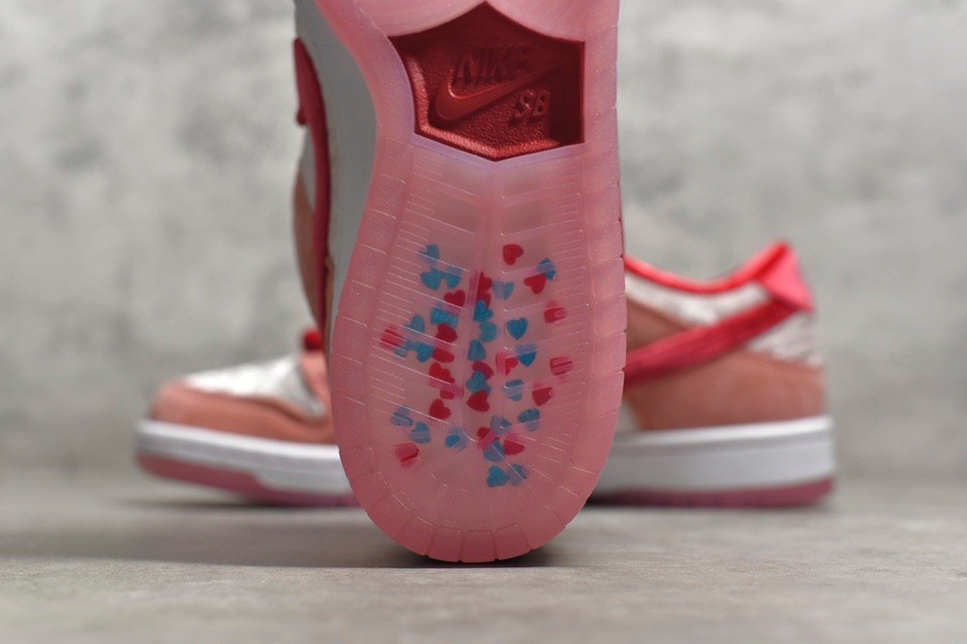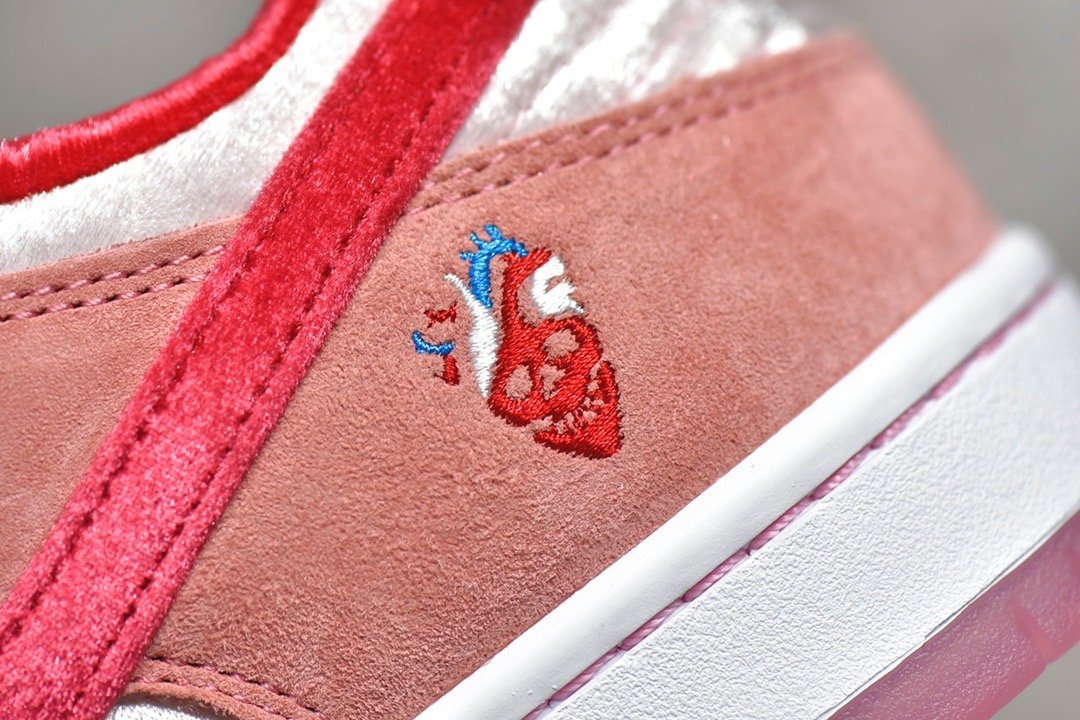 • Vibrant Colorway: A mix of soft pink. red. and white with heart and skull details. reflecting StrangeLove’s distinct aesthetic.