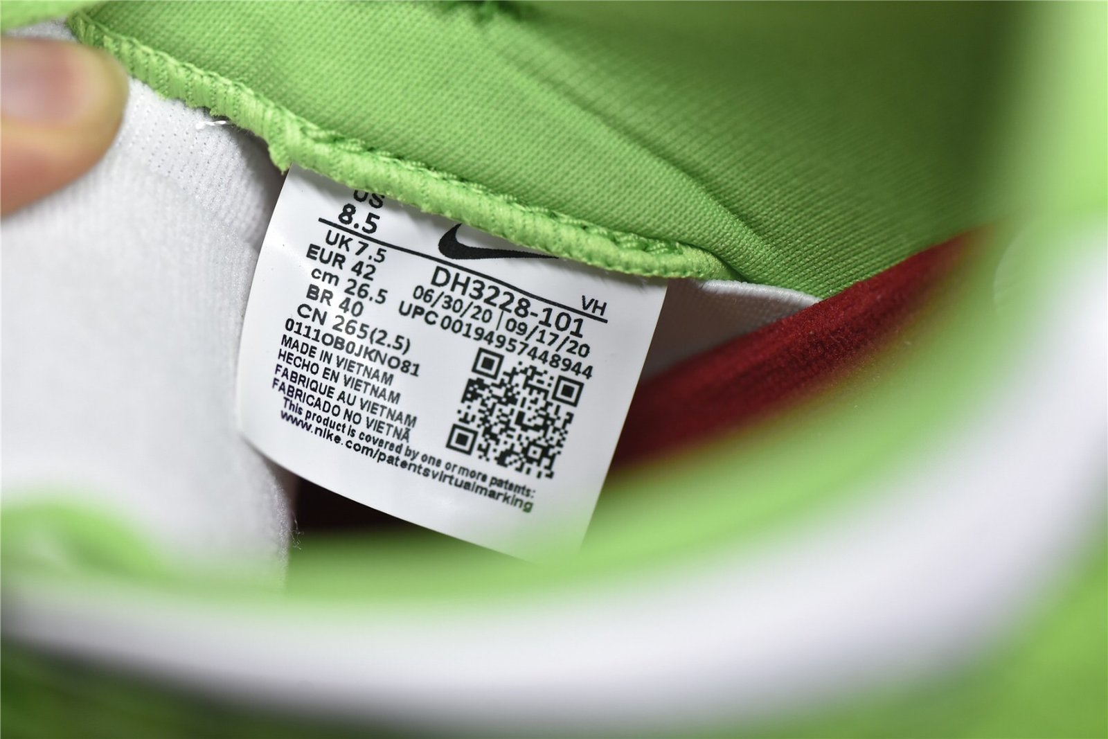 • Design Elements: Features a striking Mean Green base with black overlays. The shoe is adorned with small white stars all over the upper. giving it a unique and playful aesthetic. Supreme branding is subtly incorporated on the tongue tag and insoles. while Nike branding appears on the heel tab.