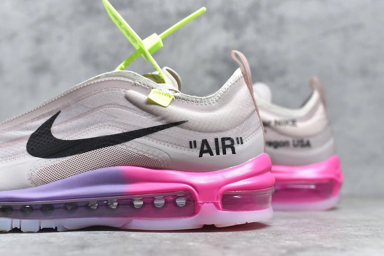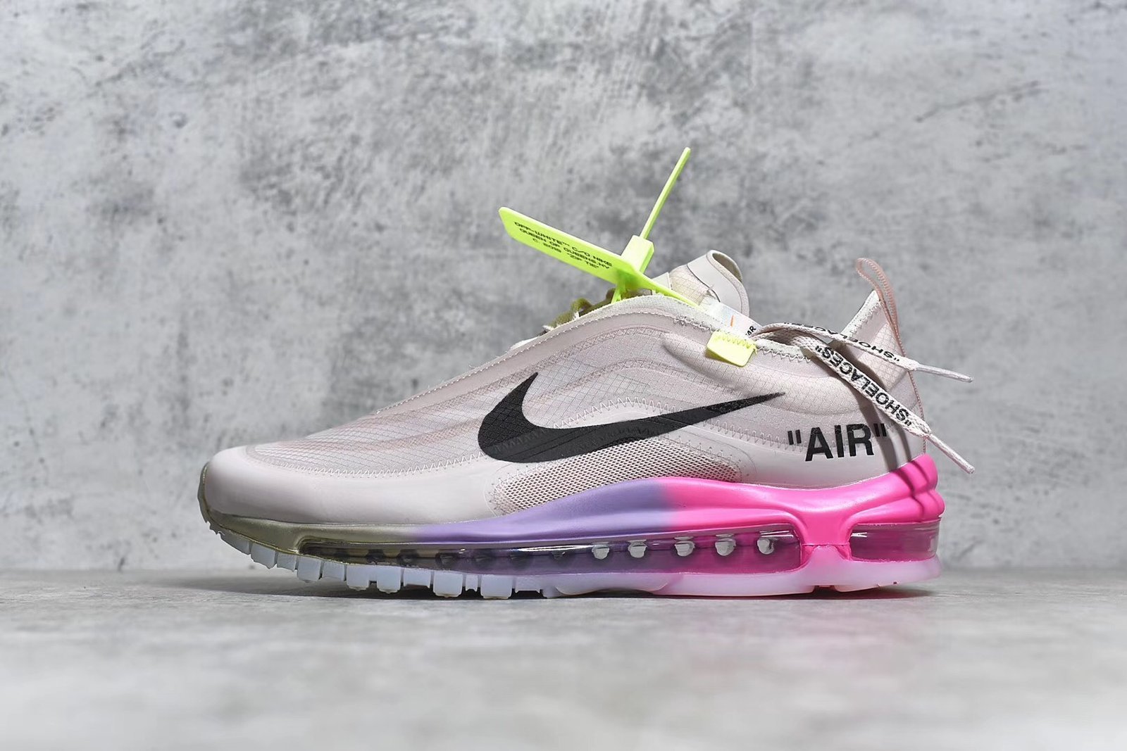 The Virgil Abloh x Serena Williams x OW Air Max 97 combines a sleek black and pink colorway with Off-White branding and deconstructed elements. Features include a breathable upper. full-length Air unit. and durable rubber outsole. perfect for both style and performance.